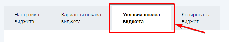 Доступны четыре типа условий для настройки показа виджета: