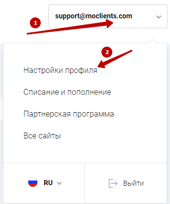 Для этого в верхнем правом углу у вашей текущей почты нажмите на стрелочку и выберите пункт «Настройки профиля». В поле email можете написать новую почту